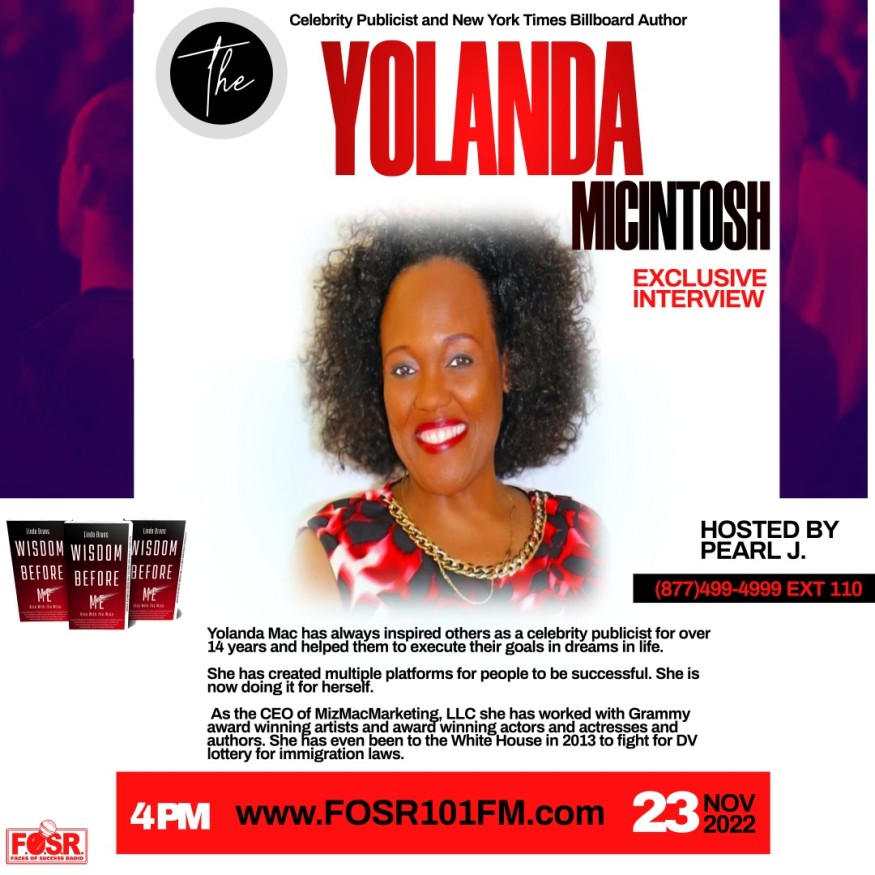 Yolanda Mac has always inspired others as a celebrity publicist for over 14 years and helped them to execute their goals in dreams in life. She has created multiple platforms for people to be successful. She is now doing it for herself. As the CEO of MizMacMarketing, LLC she has worked with Grammy award winning artists and award winning actors and actresses and authors. She has even been to the White House in 2013 to fight for DV lottery for immigration laws.